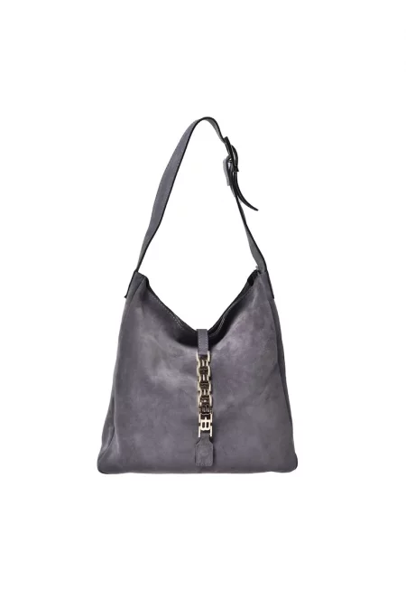 Велурена чанта за рамо - Сив
