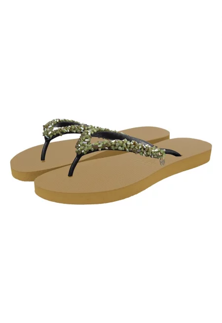 Характеристики Тип продукт: плажни чехли Цвят: сиво-кафяв Принт: без принт Материал: екологична кожа Състав Горна част: други материали Материал интериор: други материали Материал подметка: други материали