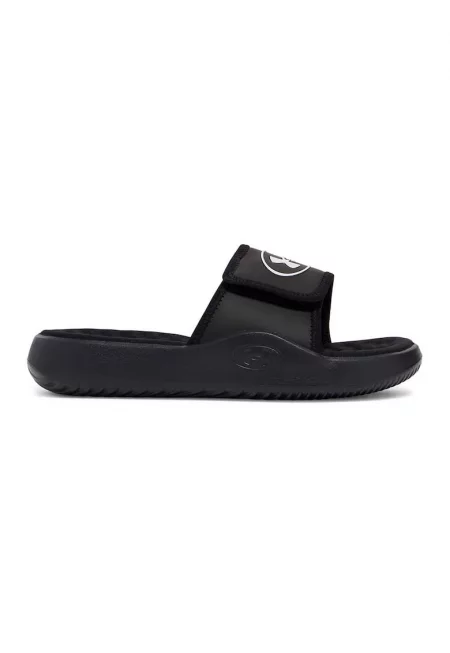 Характеристики Тип продукт: плажни чехли Цвят: черен Принт: лого Материал: синтетичен Състав Горна част: други материали Материал интериор: друг материал Материал подметка: други материали