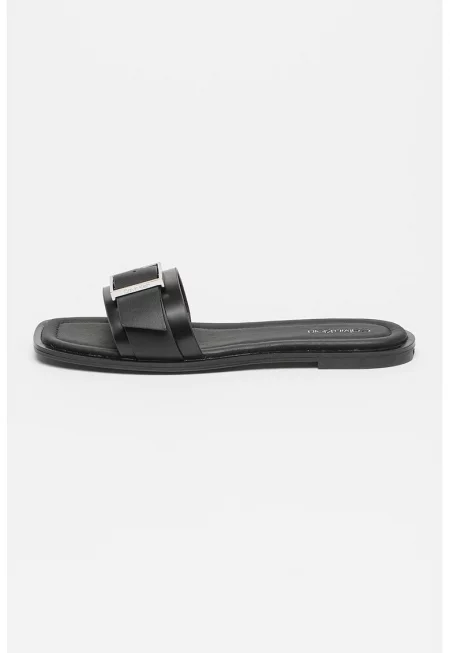 Характеристики Тип продукт: чехли Цвят: черен Материал: синтетичен Стил: ежедневен Принт: без принт Тип на подметката: плоска Детайли: лачена повърхност - лого Състав Горна част: други материали Материал интериор: различни материали Материал подметка: други материали