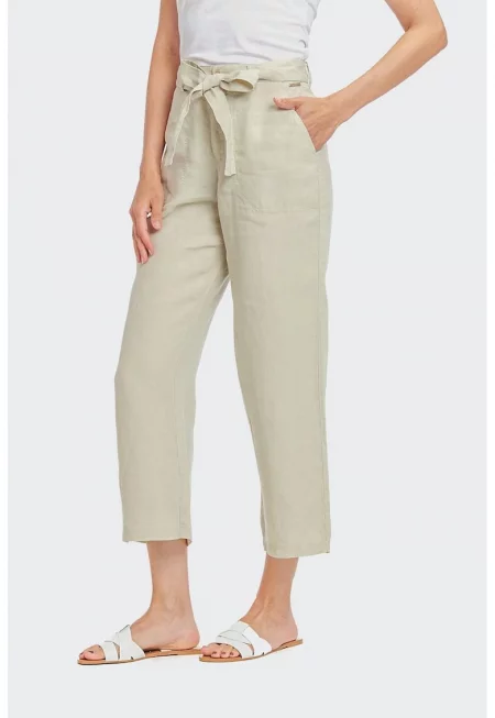 Характеристики Цвят: крем Стил: ежедневен Материал: памук - полиамид Принт: без принт Кройка: права Дължина: дълъг Талия: висока Детайли: връзка на талията Джобове: 2 джоба Закопчаване: без закопчаване Състав Външна част: 50% памук - 50% полиамид