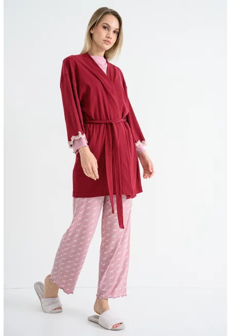 Характеристики Тип продукт: долна част на пижама - горна част на пижама Цвят: червен - бледо синьо Материал: памук - бамбукови влакна Принт: без принт - флорален Деколте: шпиц Дължина ръкав: дълъг ръкав Талия: висока Дължина панталон: дълъг Закопчаване: без закопчаване ...