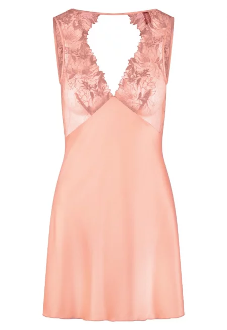 Сатинирано неглиже с дантела - Оранжев