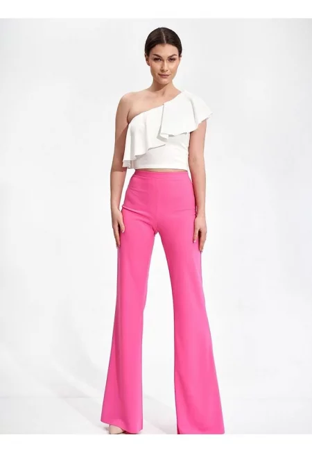 Дамски панталон разкроен - ластик - розов - полиестер