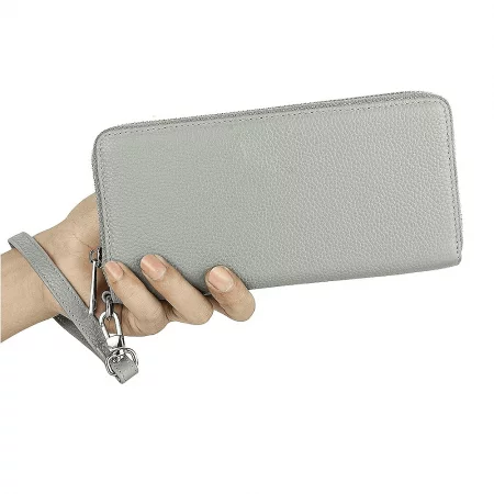 Дамски портфейл от еко кожа с метален цип. Отделения за банктноти, карти, визитки и лични документи, плюс монетник с цип.