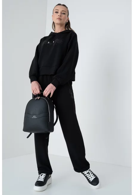 Характеристики Цвят: черен Стил: елегантен Материал: полиестер - памук - еластан Принт: без принт Кройка: конусовидна Дължина: дълъг Талия: висока Закопчаване: без закопчаване Състав Външна част: 67% памук - 31% полиестер - 2% еластан