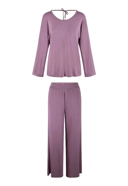 Характеристики Тип продукт: долна част на пижама Цвят: прашно розово Материал: синтетичен - вискоза Принт: без принт Кройка: стандартна Дължина панталон: дълъг Състав Външна част: 97% вискоза - 3% еластан