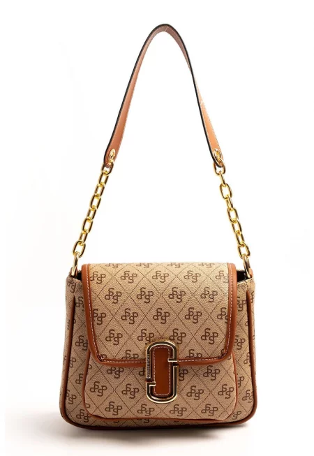 Характеристики Цвят: тъмнокафяв Материал: синтетичен Модел: шопинг Стил: ежедневен Дръжка: една Отделения: основно Цвят на метала: златист Детайли: кожени детайли Състав Външна част: 100% полиестер Размери Размери (см): 32x38x2