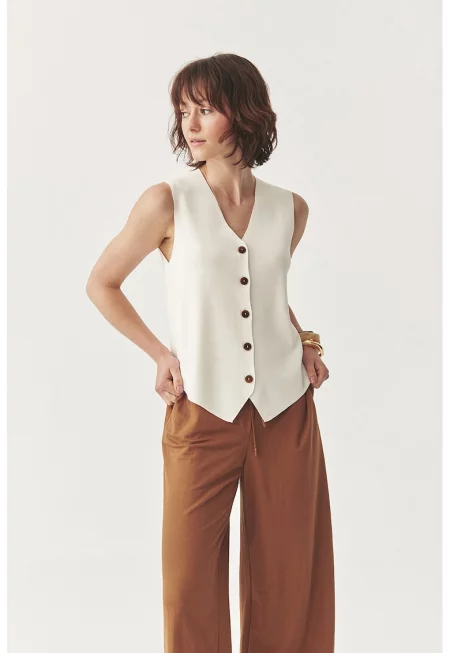 Плетен елек с шпиц - Мръснобял