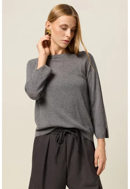Пуловер с вълна и кашмир - Tъмносив