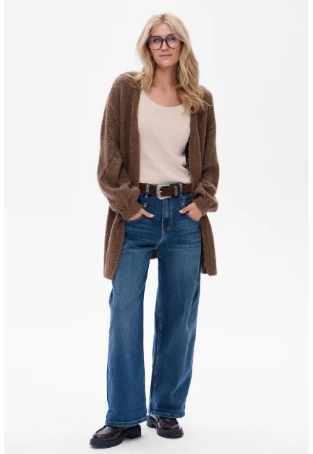 Характеристики Цвят: бежов Принт: без принт Стил: ежедневен Материал: плетен Модел: тип лодка Кройка: стандартна Закопчаване: без закопчаване Дължина ръкав: дълъг ръкав Тип ръкав: маншети с копчета Детайли: предни цепки Състав Външна част: 79% вискоза - 21% полиамид