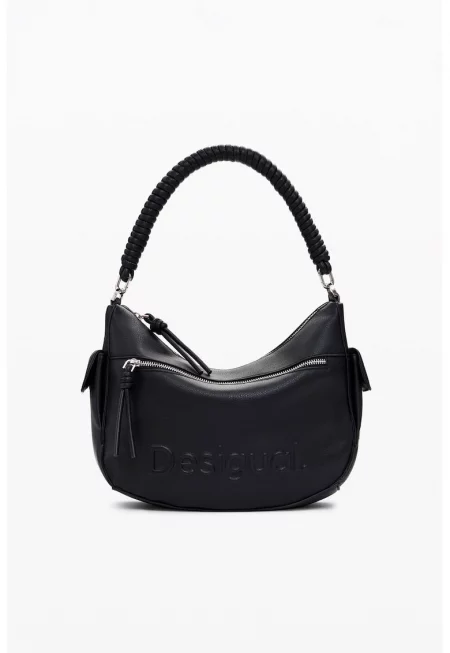 Характеристики Цвят: черен Материал: екологична кожа Модел: за рамо - ръчна чанта Стил: ежедневен Принт: с принт Дръжка: 2 фиксирани Презрамки: 1 - регулируема Джобове: външен с цип - 2 вътрешна част с цип - 2 вътрешни без затваряне Отделения: 2 Цвят на метала: сребрист ...