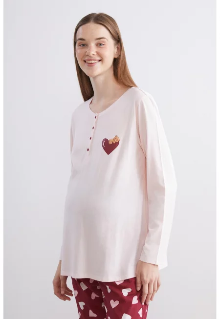 Характеристики Тип продукт: горна част на пижама Цвят: пастелносин Материал: памук Принт: флорален Деколте: шпиц Дължина ръкав: къс ръкав Състав Външна част: 96% памук - 3% полиестер - 1% еластан