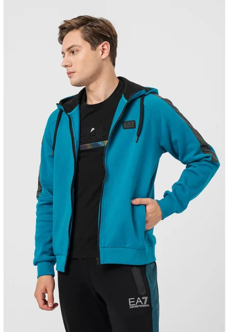 Характеристики Тип продукт: суитшърт Цвят: тъмносин Принт: лого Материал: полиестер - памук Стил: ежедневен Кройка: стандартна Закопчаване: цип Джобове: 2 Дължина ръкав: дълъг ръкав Детайли: връзки за регулиране Състав Външна част: 90% памук - 10% полиестер