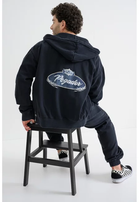 Характеристики Тип продукт: суитшърт Цвят: черен Принт: без принт Материал: памук Кройка: стандартна Закопчаване: цип Джобове: 2 Дължина ръкав: дълъг ръкав Детайли: връзка на качулката Състав Външна част: 100% памук