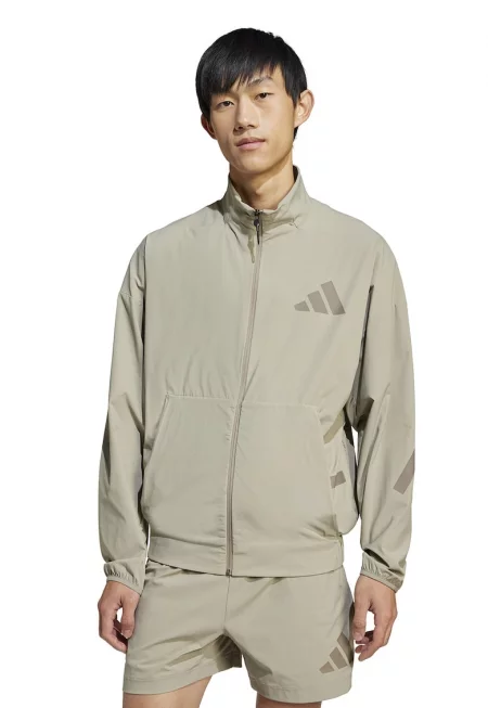 Суитшърт с цип и странични джобове - Сиво-бежов
