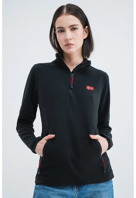 Характеристики Тип продукт: суитшърт - блузон Цвят: черен - тъмносин Принт: без принт Материал: синтетичен - памук Стил: ежедневен Кройка: стандартна Закопчаване: без закопчаване Джобове: тип кенгуру Ръкави: маншети Дължина ръкав: дълъг ръкав Състав Външна част: 65% памук ...