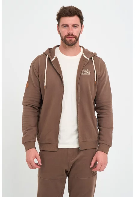Характеристики Тип продукт: суитшър Цвят: тъмнобежово Принт: без принт Кройка: стандартна Закопчаване: без закопчаване Материал: синтетичен - памук Ръкави: тип реглан Дължина ръкав: дълъг ръкав Джобове: тип кенгуру Детайли: качулка - регулируема с връзка Състав Външна ...