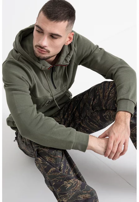 Характеристики Тип продукт: суитшърт Цвят: черен Принт: без принт Кройка: стандартна Закопчаване: цип Материал: памук Ръкави: тип реглан Дължина ръкав: дълъг ръкав Джобове: един тип кенгуру Състав Външна част: 77% памук - 23% полиестер