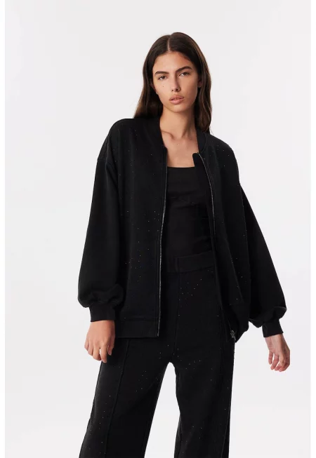 Суитшърт с декоративни камъни и цип - Черен