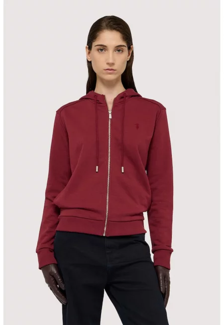 Характеристики Тип продукт: суитшър Цвят: крем Принт: без принт Кройка: стандартна Закопчаване: цип Материал: полиестер - еластан Ръкави: маншети с цип Дължина ръкав: дълъг ръкав Джобове: 2 скосени Детайли: асиметричен подгъв Състав Външна част: 63% памук - 37% полиестер