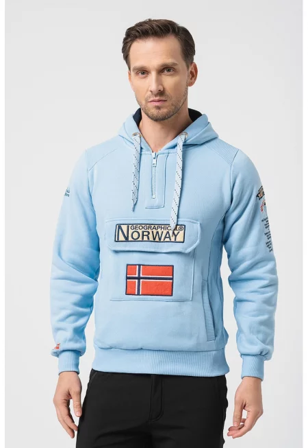 Характеристики Тип продукт: суитшърт Цвят: светло синьо Принт: лого Материал: полиестер - памук - устойчив Стил: ежедневен Кройка: стандартна Джобове: 2 отпред Дължина ръкав: дълъг ръкав Детайли: регулируема качулка с връзка Затваряне: цип Състав Външна част: 77% памук - 14% ...