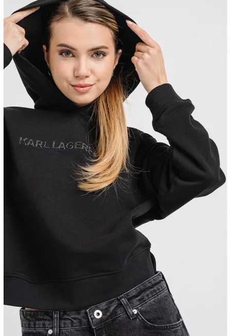 Характеристики Тип продукт: суитшърт Цвят: черен Принт: лого Материал: полиестер - памук Кройка: стандартна Деколте: с качулка Закопчаване: цип Джобове: странични - цип на ръкава Дължина ръкав: дълъг ръкав Състав Външна част: 53% памук - 47% полиестер