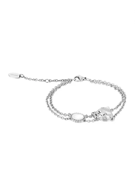 Характеристики Тип продукт: гривна Материал: инокс Цвят: слонова кост - розово златисто Детайли: синтетична перла Закопчаване: карабинер Опаковка: продуктът ще бъде доставен в персонализирана опаковка. Състав Състав: неръждаема стомана Камъни: перли Покритие: ip ...