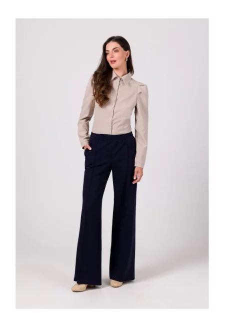 Характеристики Цвят: бял Стил: ежедневен Материал: памук Принт: без принт Кройка: стандартна Дължина: къси Талия: висока Детайли: набирания отпред Джобове: странични - обшити отзад Закопчаване: цип Състав Външна част: 97% памук - 3% еластан