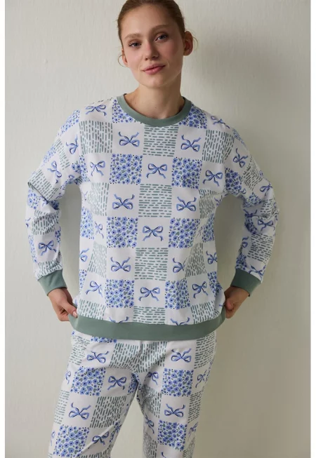 Характеристики Тип: пижама Съдържание пакет: тениска henley и шорти Цвят: синьо-зелен / бял Принт: графичен Материал: органичен памук Деколте: henley Дължина ръкав: къс ръкав Талия: средновисока Дължина панталон: къс Детайли: връзка на талията Закопчаване: без закопчаване ...