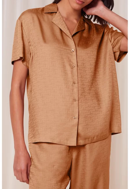 Характеристики Тип продукт: долна част на пижама - горна част на пижама Цвят: пастелносин Материал: памук - модал Принт: райе Кройка: стандартна Дължина ръкав: къс ръкав Талия: средновисока Дължина панталон: къс Закопчаване: копчета Състав Външна част: 50% модал - 50% памук