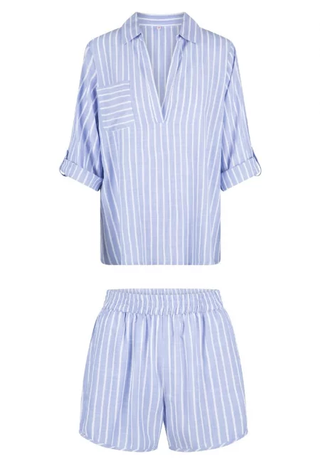 Раирана пижама с регулируеми ръкави - Бял/Син