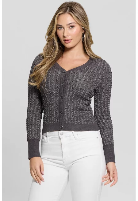 Характеристики Тип продукт: жилетка Цвят: антрацитно сиво Принт: без принт Материал: полиестер - акрил Модел: v-образно деколте Кройка: над глезена Закопчаване: копчета Състав Външна част: акрил - полиестер