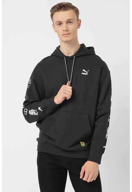 Характеристики Тип продукт: суитшър Цвят: черен Принт: лого Кройка: над глезена Закопчаване: без закопчаване Материал: синтетичен - памук - устойчиво Ръкави: маншети Дължина ръкав: дълъг ръкав Детайли: пайети - свободен модел Състав Външна част: 50% памук - 50% рециклиран ...