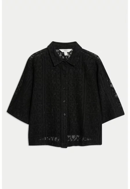 Плажна риза с кроше - Черен