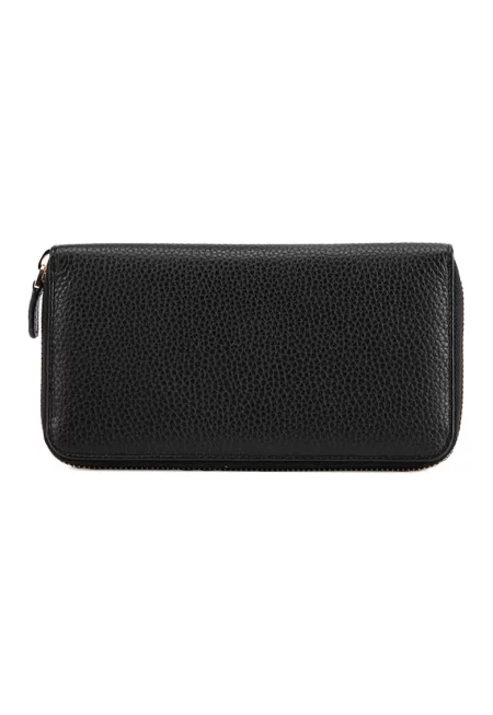 Характеристики Цвят: черен Материал: eстествена кожа Принт: без принт Джобове: отделения за карти - джоб с цип за монети - отделение за банкноти Закопчаване: без закопчаване Състав Външна част: 100% кожа Размери Размери (см): 9 x 12 x 2 cm