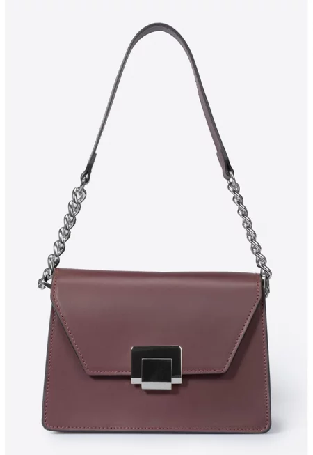 Характеристики Цвят: тъмночервен Материал: екологична кожа Модел: за рамо Стил: ежедневен Принт: без принт Презрамки: една Джобове: 1 вътрешен с цип Отделения: 1 Цвят на метала: златист Закопчаване: метална система Състав Външна част: 100% кожа Подплата: 100% полиестер ...
