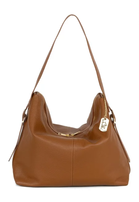 Кожена чанта за рамо - Карамел