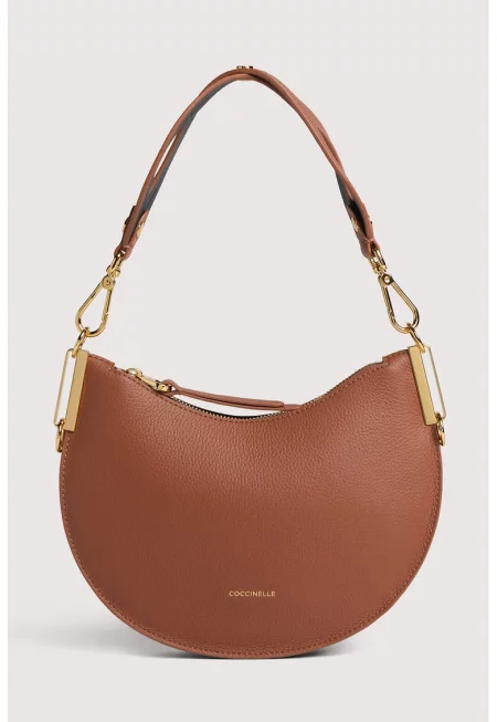 Характеристики Цвят: кафяв Материал: eстествена кожа Модел: за рамо Стил: ежедневен Дръжка: верижка Презрамки: една Цвят на метала: златист Закопчаване: магнитни капси Състав Външна част: 100% кожа Размери Размери (см): 14x23x8