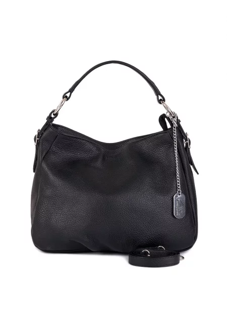 Характеристики Цвят: черен Материал: eстествена кожа Модел: за рамо Стил: ежедневен Презрамки: отделящи се и регулируеми Джобове: 1 вътрешен Отделения: основно Цвят на метала: златист Закопчаване: магнитни капси Състав Външна част: 100% волска кожа Подплата: подплата: 100% ...