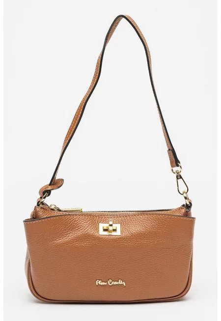 Характеристики Цвят: camel Материал: eстествена кожа Модел: за рамо Стил: ежедневен Принт: без принт Дръжка: 2 фиксирани Отделения: 3 Цвят на метала: златист Закопчаване: цип Състав Външна част: кожа Размери Размери (см): 25.5x36x14