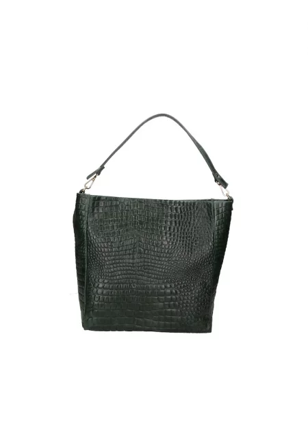 Характеристики Цвят: черен Материал: eстествена кожа Модел: шопинг Стил: ежедневен Принт: без принт Презрамки: една - фиксирана Джобове: вътрешни Цвят на метала: сребрист Закопчаване: цип Състав Външна част: телешка кожа Размери Размери (см): 30.5 x 26 x 9 cm