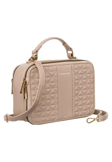 Характеристики Цвят: сиво-бежов Материал: eстествена кожа Модел: чанта през рамо Стил: ежедневен Принт: без принт Презрамки: фиксирана Отделения: 1 основно отделение Цвят на метала: златист Закопчаване: капаче Състав Външна част: кожа Размери Размери (см): 14x22.5x8.5