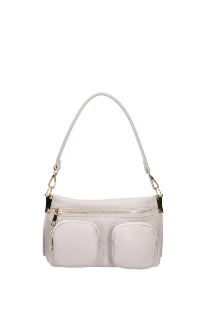 Характеристики Цвят: син Материал: eстествена кожа Модел: за рамо Стил: ежедневен Принт: без принт Презрамки: отделящи се - регулиране Джобове: вътрешни с цип Отделения: две Цвят на метала: златист Закопчаване: цип Състав Външна част: кожа Размери Размери (см): 29x38x11