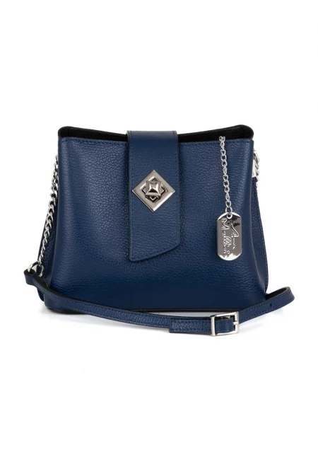 Кожена чанта през рамо с лого - Тъмносин