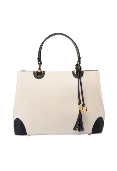 Характеристики Цвят: бежов Материал: eстествена кожа Модел: чанта Стил: ежедневен Принт: без принт Презрамки: 2 Джобове: вътрешни с цип Отделения: 1 Цвят на метала: златист Закопчаване: цип Състав Външна част: кожа Подплата: 100% полиестер Размери Размери (см): 34 x 45 x 14 cm