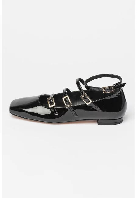 Характеристики Тип: с ток Материал: eстествена кожа Цвят: черен Принт: без принт Стил: елегантен Връх: остър Тип на тока: класически Закопчаване: катарама Състав Горна част: кожа Материал интериор: еко кожа Материал подметка: други материали Размери Височина на tок: 4 cm