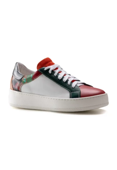 Характеристики Цвят: бял - оранжев Връх: кръгъл Тип на подметката: плоска Детайли: контрастни зони - перфорации Материал: eстествена кожа Стил: ежедневен Закопчаване: връзки Състав Горна част: кожа - други материали Материал интериор: текстил Материал подметка: други ...
