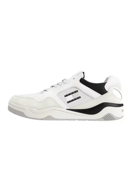 Характеристики Цвят: бял - черен Принт: лого Стил: ежедневен Материал: велур - екологична кожа - eстествена кожа Връх: кръгъл Закопчаване: връзки Състав Горна част: кожа - други материали Материал интериор: други материали - текстил Материал подметка: други материали