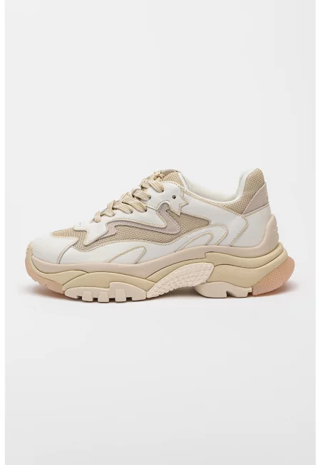 Характеристики Цвят: бял - мръснобял Принт: лого Стил: ежедневен Материал: eстествена кожа Връх: кръгъл Закопчаване: връзки Състав Горна част: кожа Материал интериор: синтетика и текстил" Материал подметка: други материали"